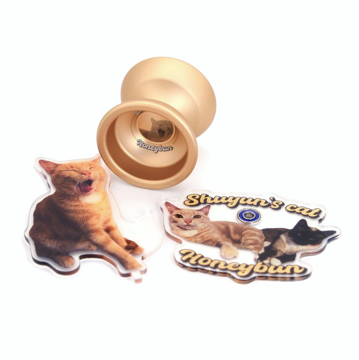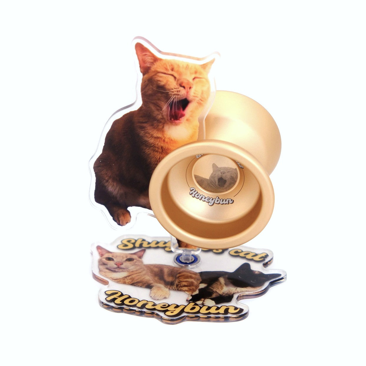 Note: this is an unresponsive yoyo that requires a bind return. Only the Honeybun (cat) colour comes with rotating stand